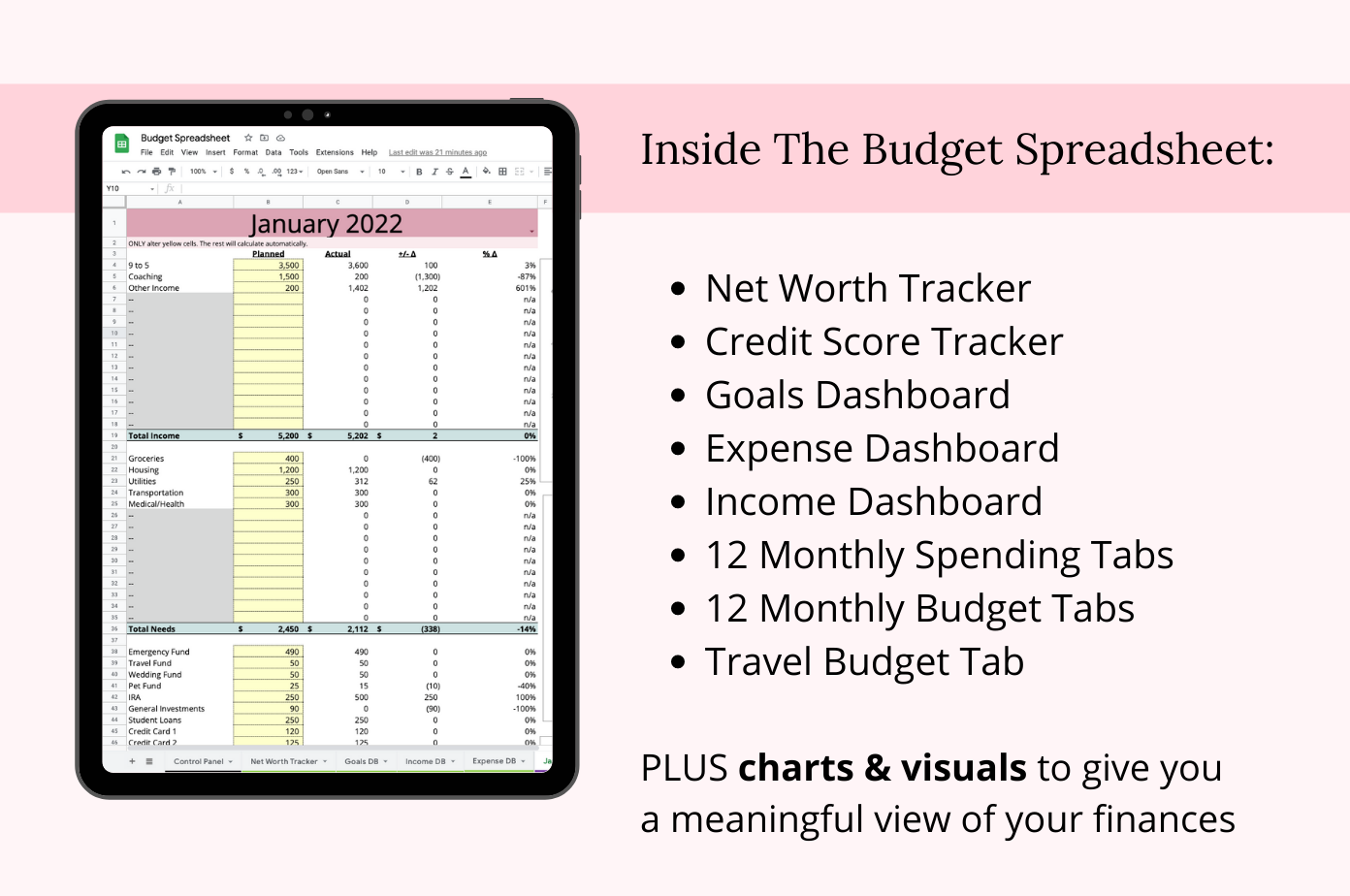 Visual Learners — if you love looking at charts, graphs, and other visual representations of information, then you are going to be obsessed with the Budget Pro Spreadsheet